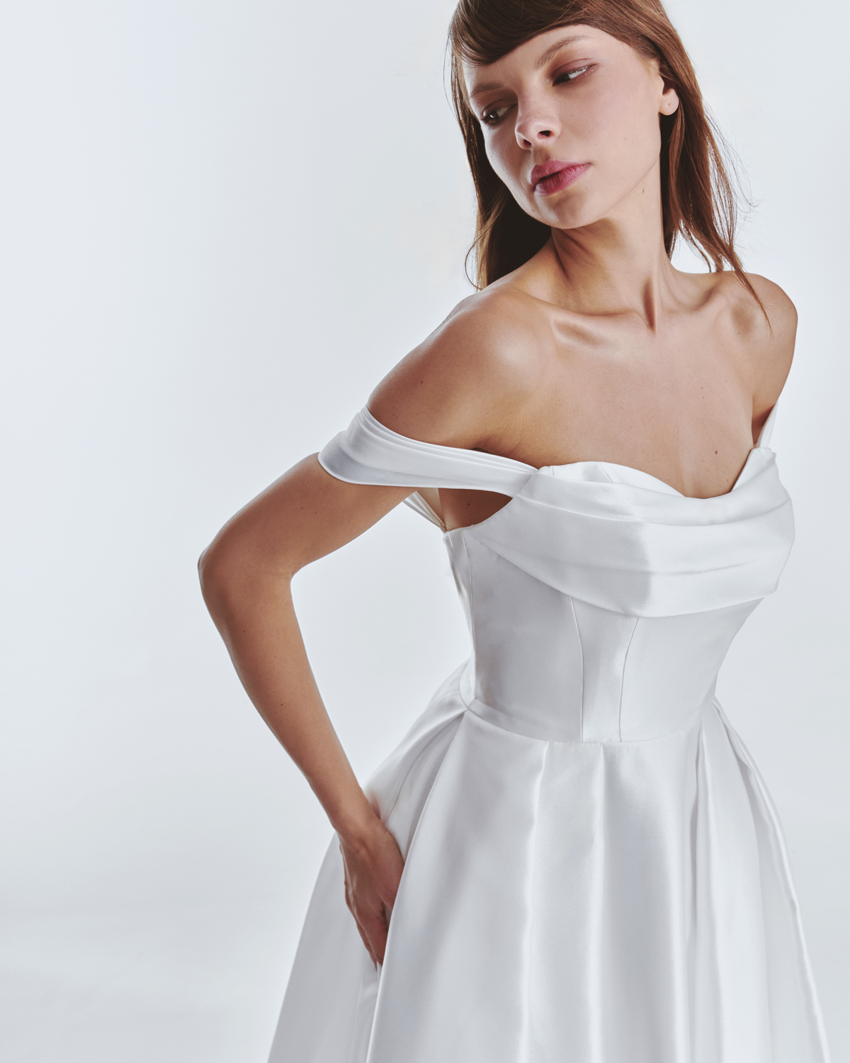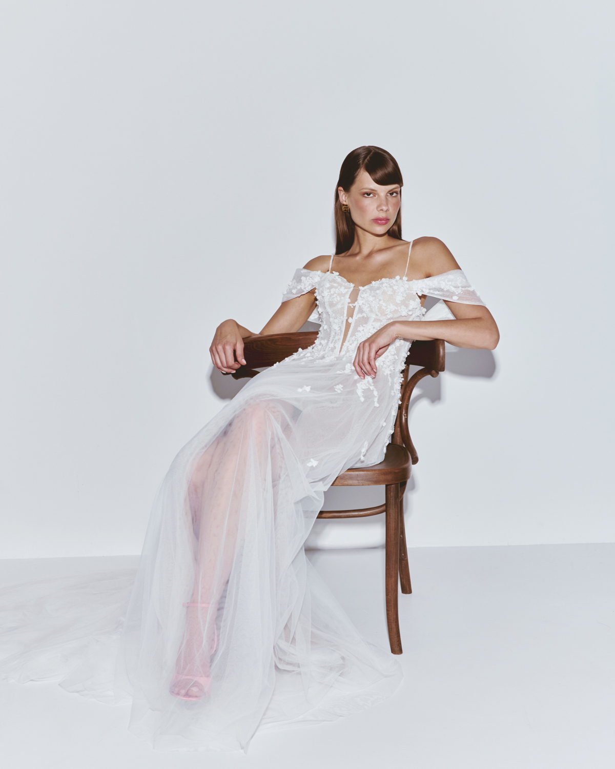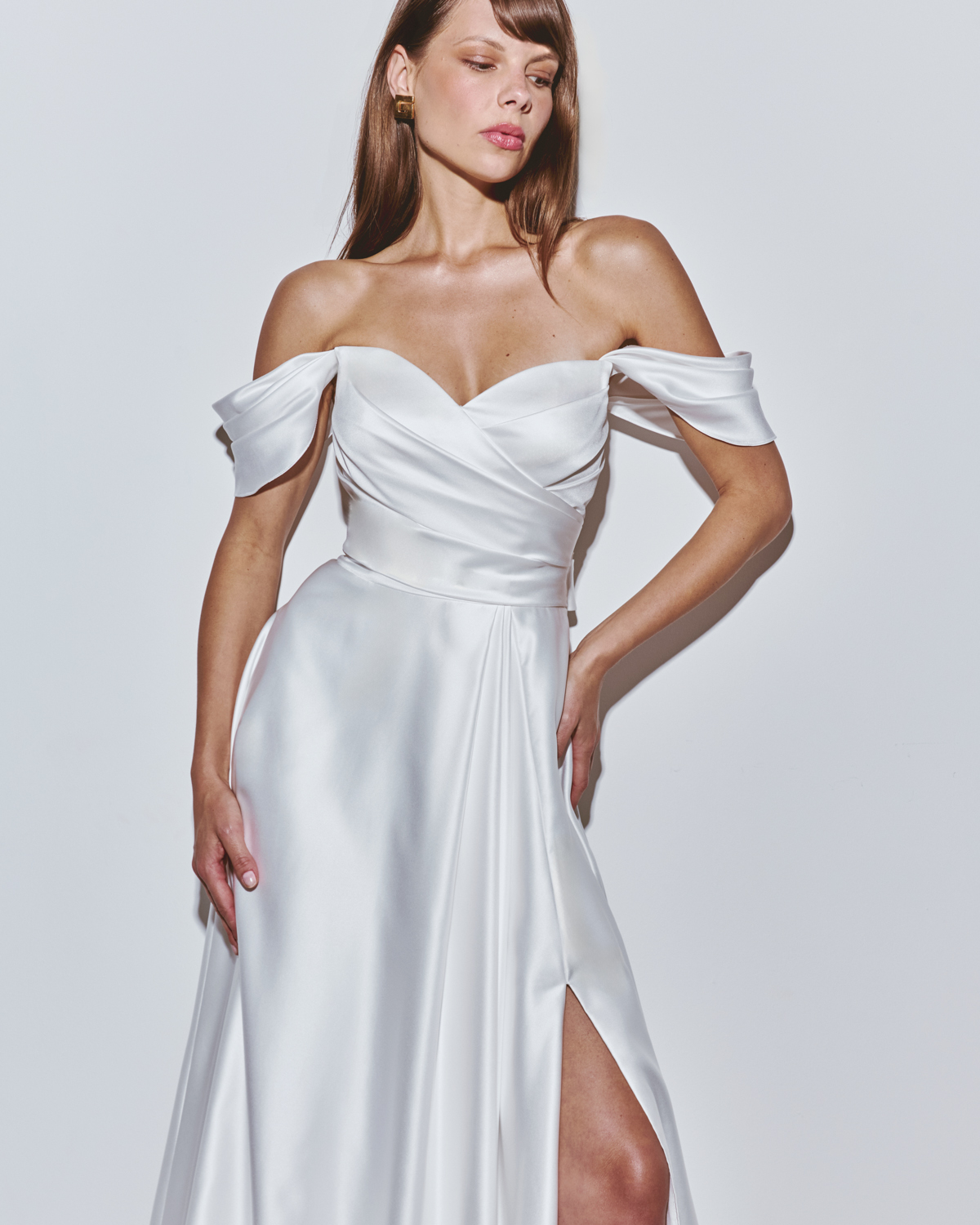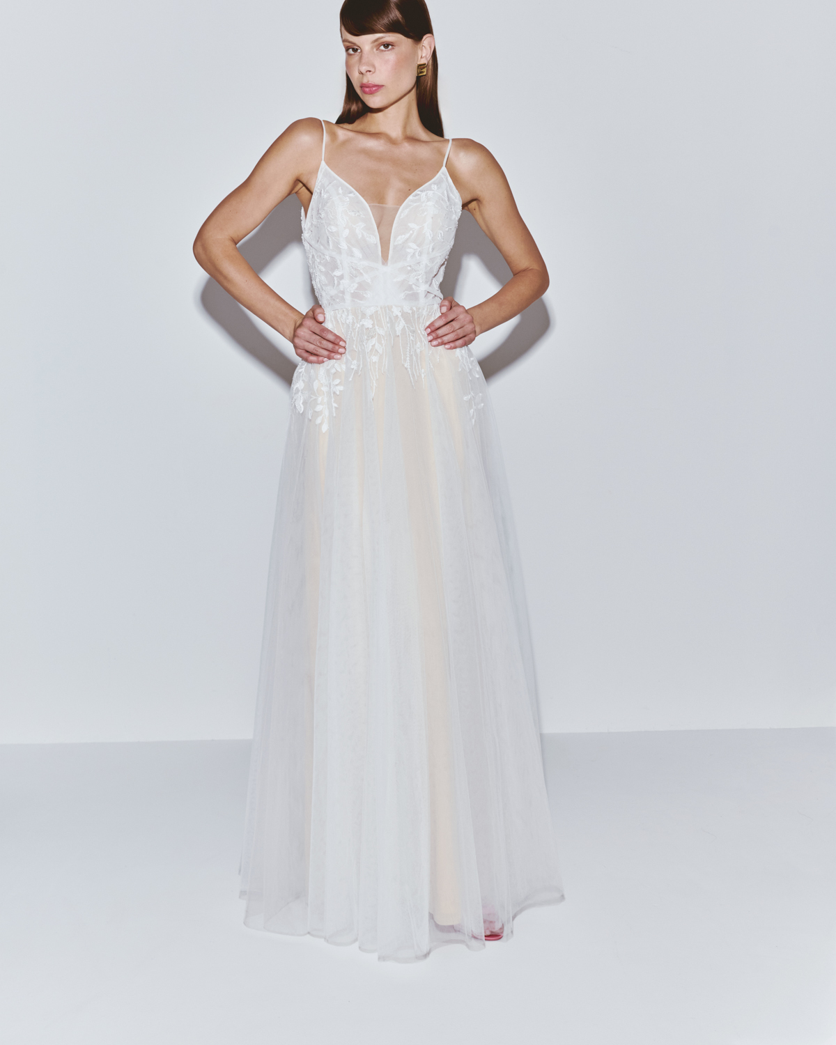 Satin gleitet über den Körper wie Wasser, Spitze umhüllt die Haut wie eine sanfte Berührung. Im Studio – reine Form. An der Weichsel – Freiheit und Leidenschaft. Diese Kollektion zeigt: Wahre Eleganz braucht keine Bühne, um alle Blicke auf sich zu ziehen. Amy ist Freiheit – leicht wie Luft, mit einem Hauch von Provokation. Brautkleider für Frauen, die keine Angst haben, gesehen zu werden. Eleganz, die verführt. Schlichtheit, die verlockt. Subtilität, die am unwiderstehlichsten wird.