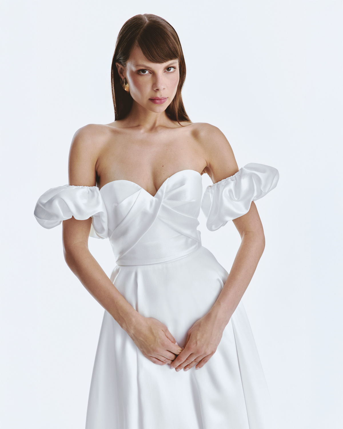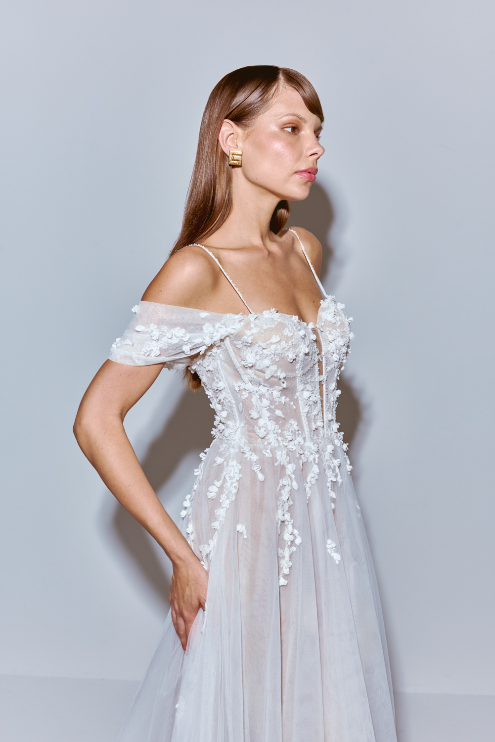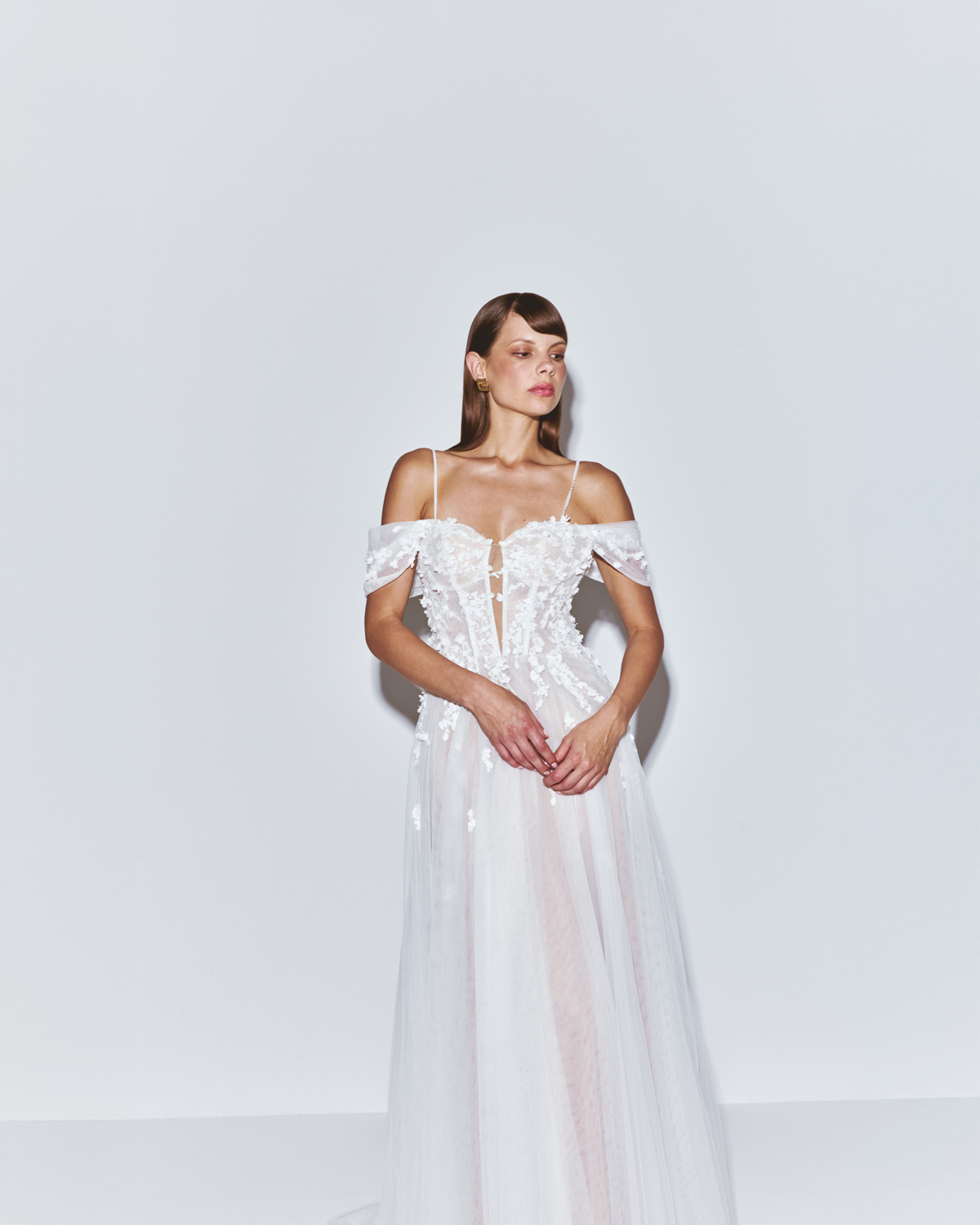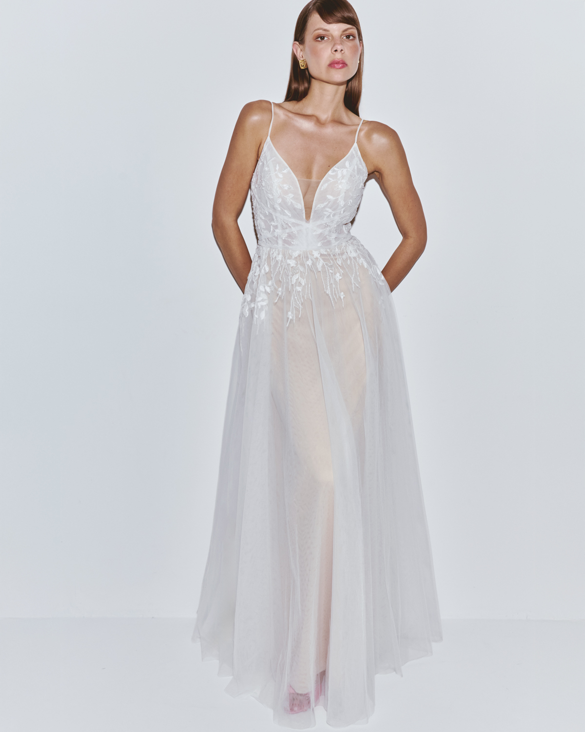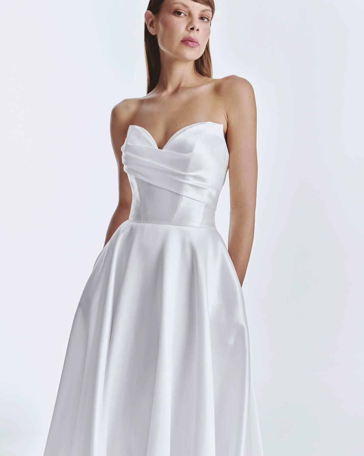 Satin gleitet über den Körper wie Wasser, Spitze umhüllt die Haut wie eine sanfte Berührung. Im Studio – reine Form. An der Weichsel – Freiheit und Leidenschaft. Diese Kollektion zeigt: Wahre Eleganz braucht keine Bühne, um alle Blicke auf sich zu ziehen. Amy ist Freiheit – leicht wie Luft, mit einem Hauch von Provokation. Brautkleider für Frauen, die keine Angst haben, gesehen zu werden. Eleganz, die verführt. Schlichtheit, die verlockt. Subtilität, die am unwiderstehlichsten wird.
