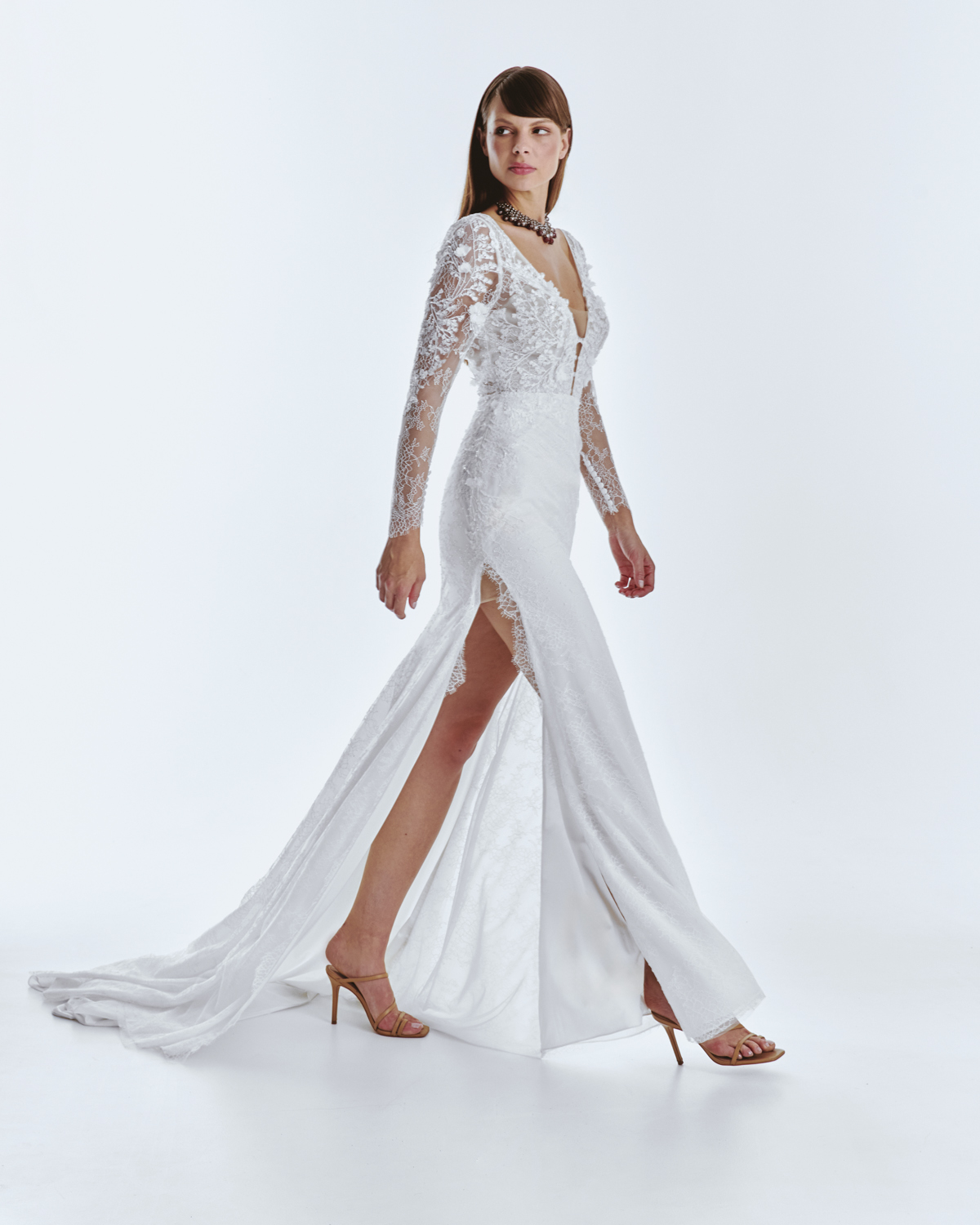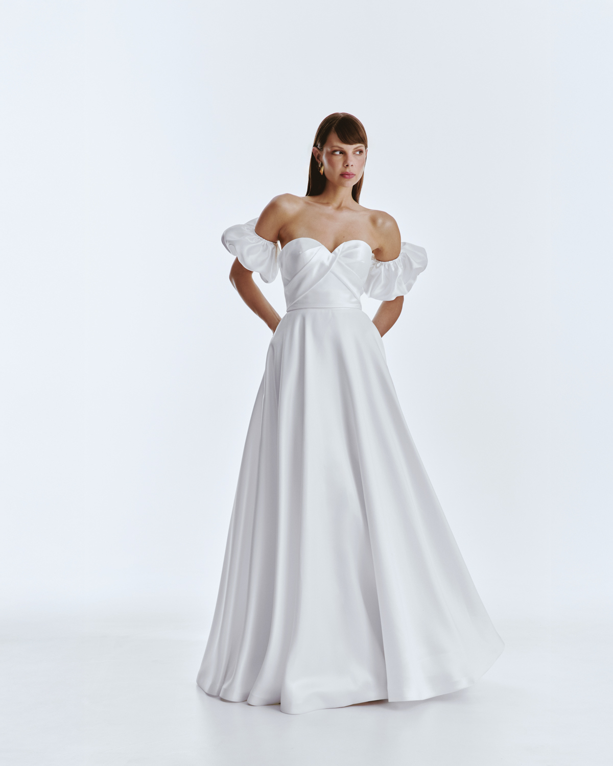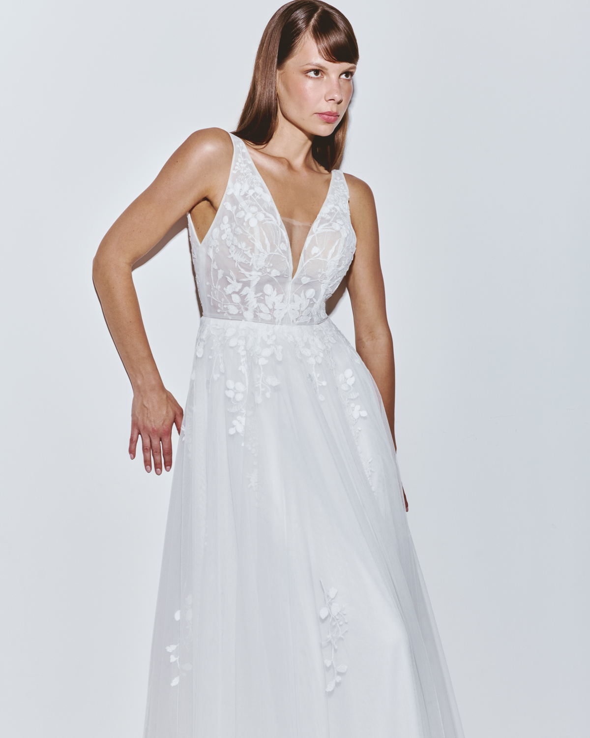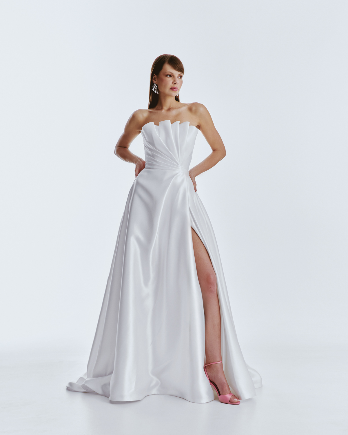 Satin gleitet über den Körper wie Wasser, Spitze umhüllt die Haut wie eine sanfte Berührung. Im Studio – reine Form. An der Weichsel – Freiheit und Leidenschaft. Diese Kollektion zeigt: Wahre Eleganz braucht keine Bühne, um alle Blicke auf sich zu ziehen. Amy ist Freiheit – leicht wie Luft, mit einem Hauch von Provokation. Brautkleider für Frauen, die keine Angst haben, gesehen zu werden. Eleganz, die verführt. Schlichtheit, die verlockt. Subtilität, die am unwiderstehlichsten wird.